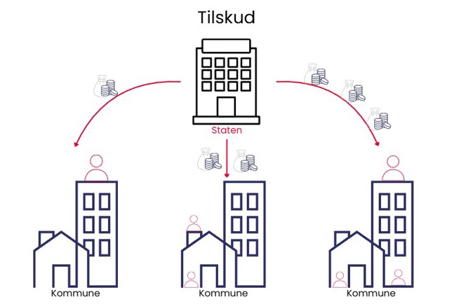 Tilskud dækker over statens økonomiske bidrag til kommunerne. Hvert år tilfører staten midler, så kommunerne samlet set har indtægter, der matcher deres udgiftsbehov. Tilskuddet fordeles blandt andet efter befolkningstal – jo flere borgere, desto større tilskud.