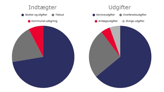 Grundlæggende har kommunen to typer af indtægter: skatter og afgifter samt tilskud og udligning.